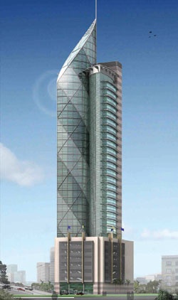 كما وفر له أفضل ما يتواجد في الأسواق العالمية من رخام وسيراميك وأطقم حمامات وإكسسواراتها تم استقطابها لتكون ضمن المواد التشطيبية النهائية للبرج. أما المصاعد فيوجد بالبرج ثمانية مصاعد بسرعات عالية وآمنة في الوقت نفسه، وصمم بحيث تكون واجهته الخارجية من الزجاج وذلك لتأمين إطلالة كاملة ورائعة على الخليج العربي حيث تم اختيار مواصفات خاصة كالسماكة واللون ومقدار حجبها للأشعة الضارة ومع عدم عكسها لأشعة الشمس للخارج.