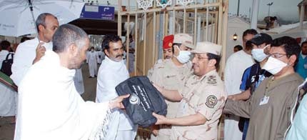 وزعت الشؤون الصحية للحرس الوطني ومن مستشفى الطوارئ الميداني بمنى حقائب خاصة على حجاج بيت الله الحرام. وقال العميد نافل الشلوي نائب قائد المعسكر بمستشفى الطوارئ بمنى أن الحقيبة تضم إسعافات أولية و سجادة صلاة وماسكا للأنف. وأكد أن هذه الخطوة تقوم بها صحة الحرس الوطني سنوياً في خطوة تهدف إلى تقديم خدمة متميزة لضيوف الرحمن وبث التوعية الصحية بما يضمن سلامتهم.
