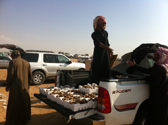 "الاقتصادية" تجولت في السوق والتي تتجاوز مبيعاته من الفقع يوميا أكثر من 100 الف ريال ويقول علي الشمري أحد الذين يعملون في السوق أن مبيعات الفقع ترتفع يومي الجمعة والسبت من كل اسبوع نظرا للإقبال الكبير من زوار المنطقة في ايام الاجازه الأسبوعية ويين الشمري ان زوار السوق من مواطني دول الخليج ومناطق المملكة الذين يشترون كميات كبيرة من "الفقع" لتقديمها لأهاليهم وأصدقائهم كهدايا لأن الفقع من النباتات الموسمية النادرة وغالية الثمن.