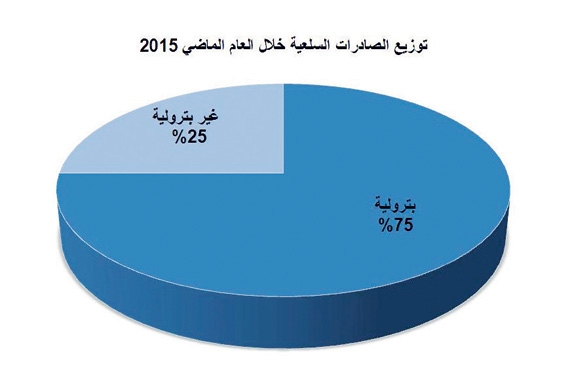 واللافت في البيانات أن نسبة الصادرات البترولية قد انخفضت من إجمالي الصادرات السلعية من 83.1 في المائة إلى 75.1 في المائة خلال 2015.
