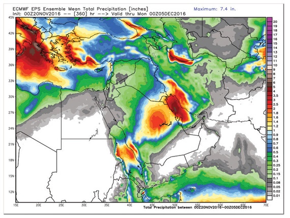 تشير خرائط الطقس إلى تحسن فرص هطول الأمطار حتى نهاية هذا الأسبوع وبداية الأسبوع المقبل في المناطق الغربية والوسطى والشرقية والشمالية والجنوبية الغربية، وينتظر أن تكون غزيرة جداً نهاية الأسبوع فوق مياه الخليج العربي وبعض المناطق الشرقية والقصيم وشمالي منطقة الرياض.