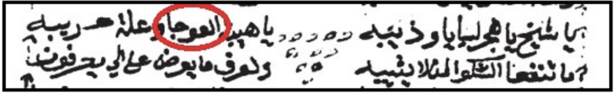 يا شيخ يا هجر السبايا وذيبه *** يا هيبة «العوجا» وعلة حريبه