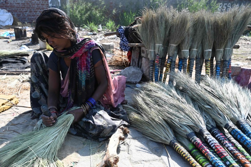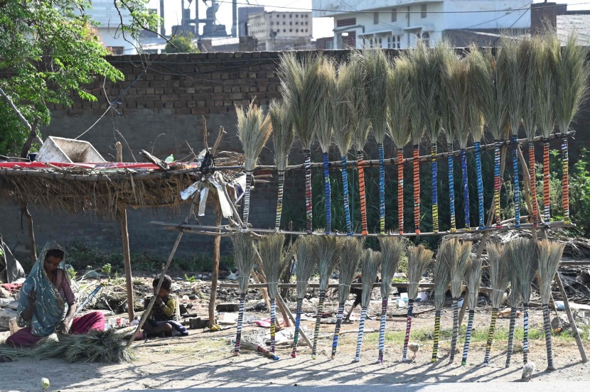 يعتمد الكثير في الهند على تأمين دخلهم المادي من خلال صناعة المكانس البدائية من أوراق النخيل في ضواحي أمريتسار.
