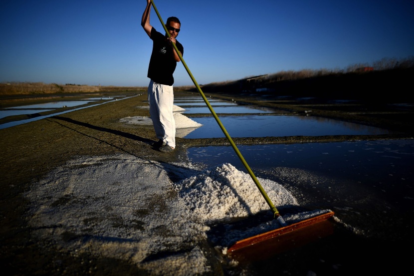 وفي مستنقع في جزيرة إيل دو ري، يقوم صانع الملح بجمع البلورات البيضاء المتكونة على قيعان الطين في أهرامات صغيرة، ويعد هذا الحصاد الأخير لموسم يتسم بالمعركة من أجل الملح العضوي. "الفرنسية"