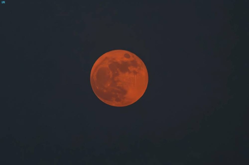 القمر العملاق الذي يلقب ب «قمر الحصاد » يظهر للمرة الأخيرة خلال 2023 فوق شواطئ البحر الأحمر في مدينة جدة السعودية. «واس »