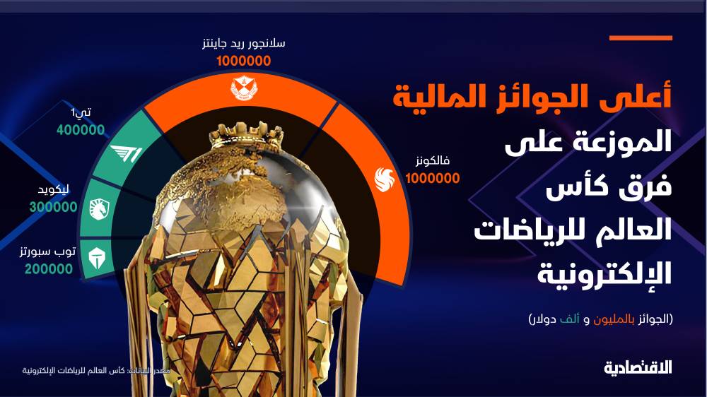 فريقا فالكونز السعودي وسلانجور ريد جاينتز الماليزي حازا على جوائز مالية بمليون دولار لكل منهما، منذ انطلاق المنافسات في قسم بطولات الألعاب التي يستنافس فيها أكثر من 1500 لاعب ولاعبة من جميع سكان العالم.