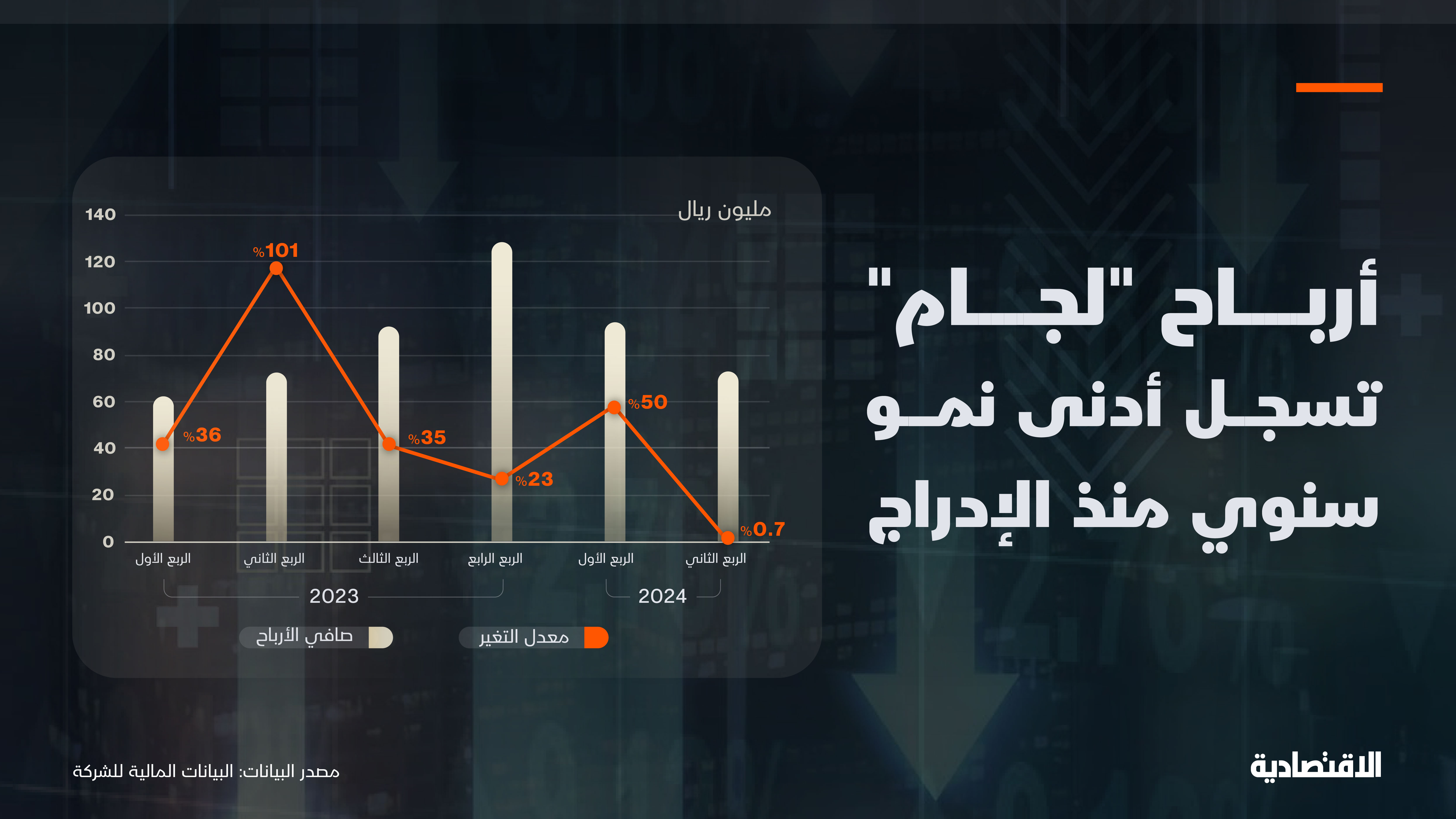 ارتفعت أرباح "لجام للرياضة" إلى 73 مليون ريال، أي 0.7% خلال الربع الثاني من العام الجاري على أساس سنوي، لتسجل أدنى معدل نمو سنوي منذ الإدراج.