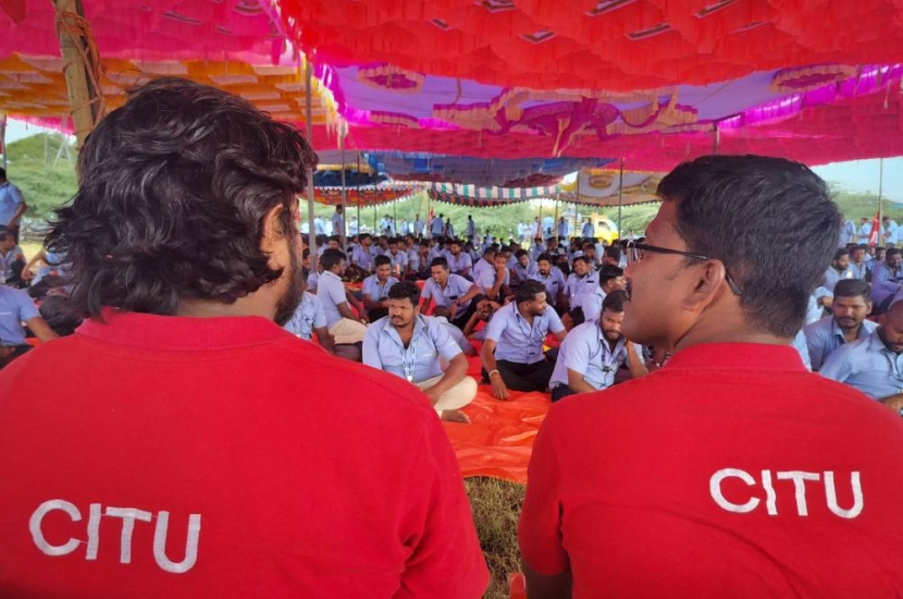 يحتج العمال منذ الأسبوع الماضي في خيمة مؤقتة بالقرب من المصنع، ويقومون بشرب الشاي وتوزيع الطعام والاستماع إلى المتحدثين، بحضور مع زعيمهم النقابي إي موثوكومار.