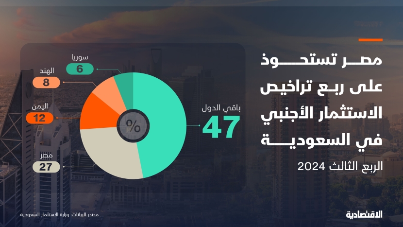 تصدرت مصر دول العالم من حيث عدد التراخيص الاستثمارية المصدرة في السعودية خلال الربع الثالث من العام الجاري، بـ1029 ترخيصا، تمثل 27% من الإجمالي، مع توجه عديد الشركات المصرية لدخول السوق السعودية.