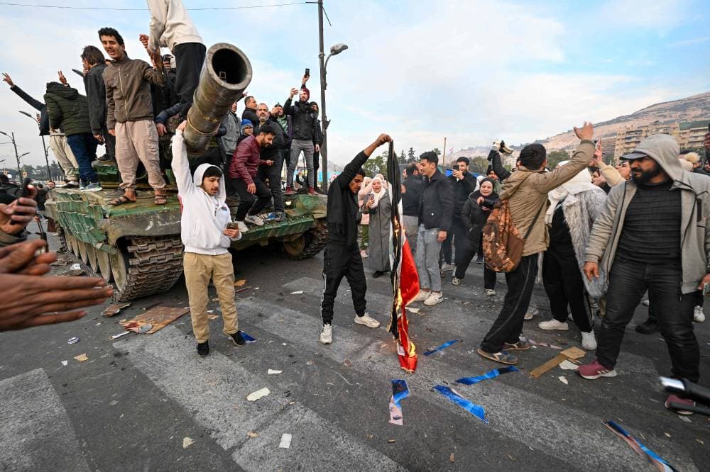 وذكر شهود أن الآلاف من السوريين في سيارات وعلى الأقدام تجمعوا في ساحة رئيسية في دمشق وهتفوا للحرية، بعد سقوط حكم أسرة الأسد الذي استمر نحو 50 عاما.