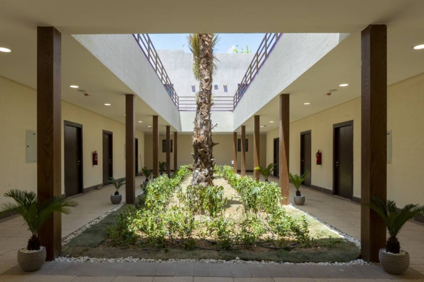 ومن أبرز مرافقه 312 صالة نوم مجهزة بأحدث وسائل الراحة، 16 صالة طعام، 8 عيادات طبية مجهزة للطوارئ والرعاية الأولية، 8 غرف حلاقة، وأكثر من 550 دورة مياه (بإجمالي 608 دورات مياه موزعة في 32 مجموعة، تشمل مرافق لذوي الاحتياجات الخاصة)، ويشتمل مطبخين مركزيين، و16 حديقة وفناء داخلي لتوفير مساحات خضراء للاسترخاء.