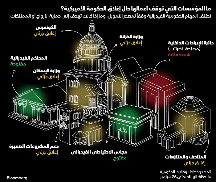 تختلف حالة عمل المؤسسات الفيدرالية خلال الإغلاق بناءً على مصادر تمويلها وما إذا كانت خدماتها تُصنّف على أنها ضرورية أو غير ضرورية.