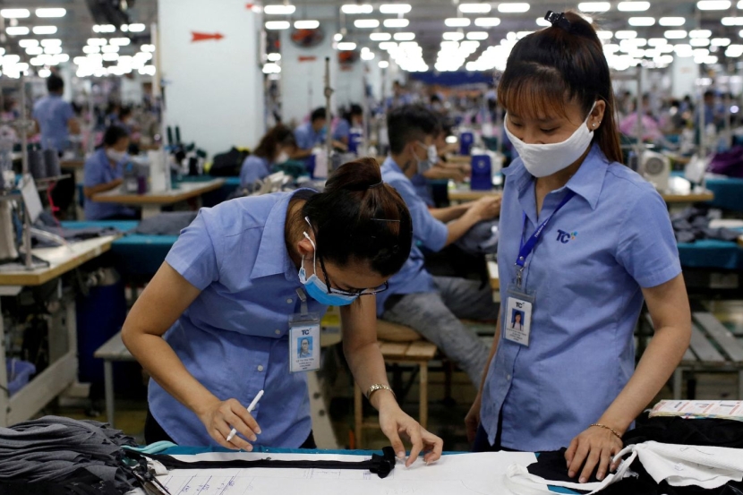 عمال في خط تجميع الملابس في شركة ثانه كونج للنسيج والملابس والاستثمار والتجارة في مدينة هوشي منه الفيتنامية. تصوير:...