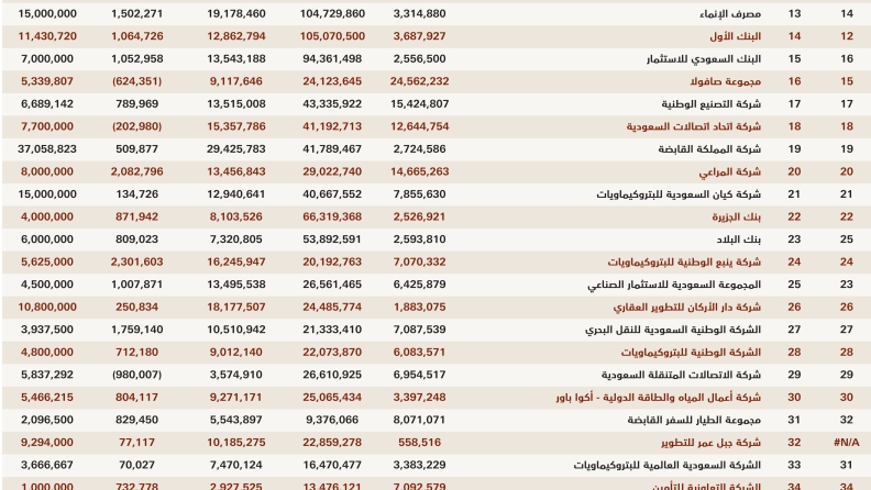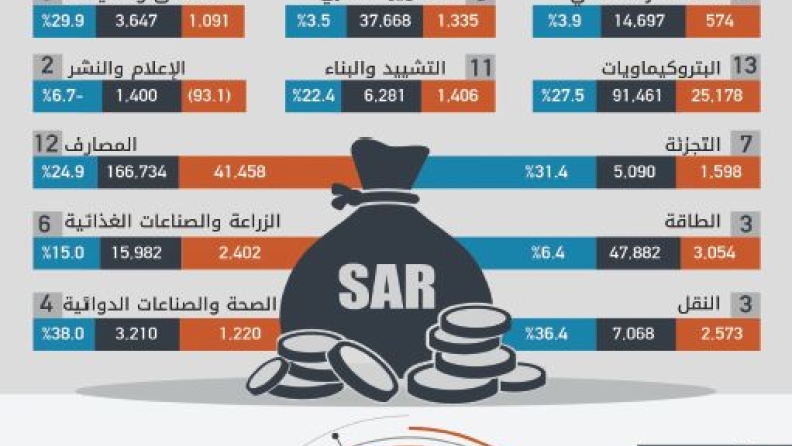 أكبر 100 شركة سعودية تحقق ربحا يعادل 19 % من رؤوس أموالها في عام